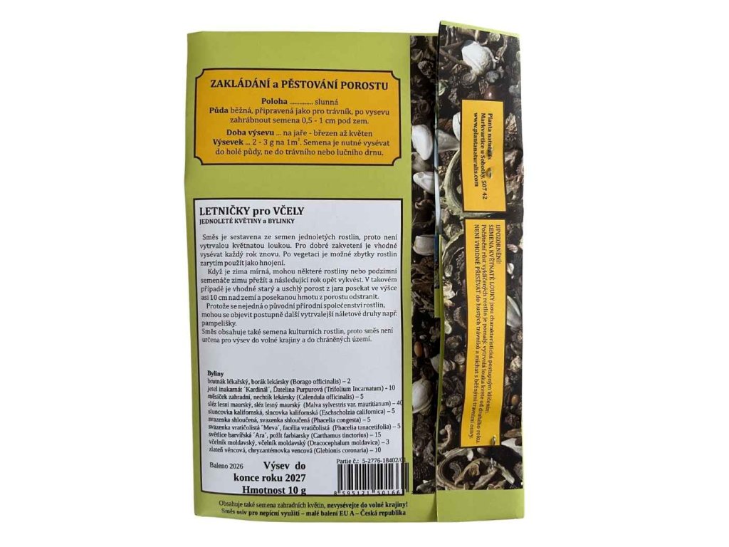 Směs Letničky pro včely je navržena tak, aby poskytovala bohatou pastvu od časného léta až do období, kdy v krajině přirozeně ubývá květů - zejména v pozdním létě a na začátku podzimu. Právě tehdy včely, motýli i další opylovači nejvíce ocení každý květ plný nektaru a pylu. Šest druhů jednoletých bylin vytváří pestrý, barevný porost, který rychle roste, snadno se ujímá a dokáže oživit i méně výrazná místa na zahradě.