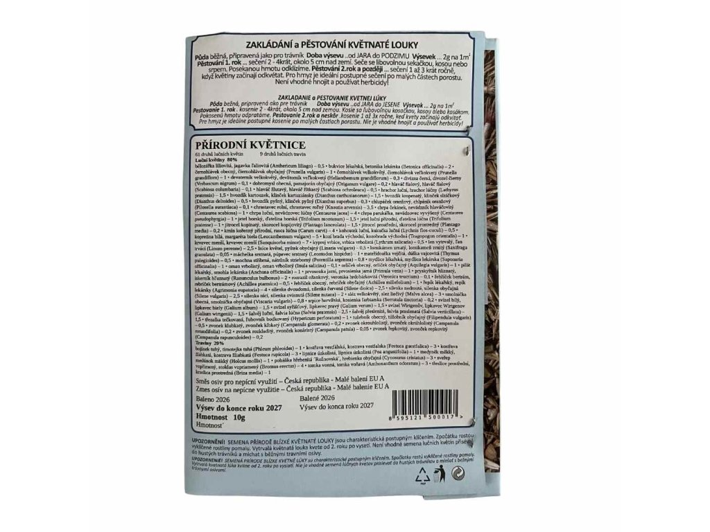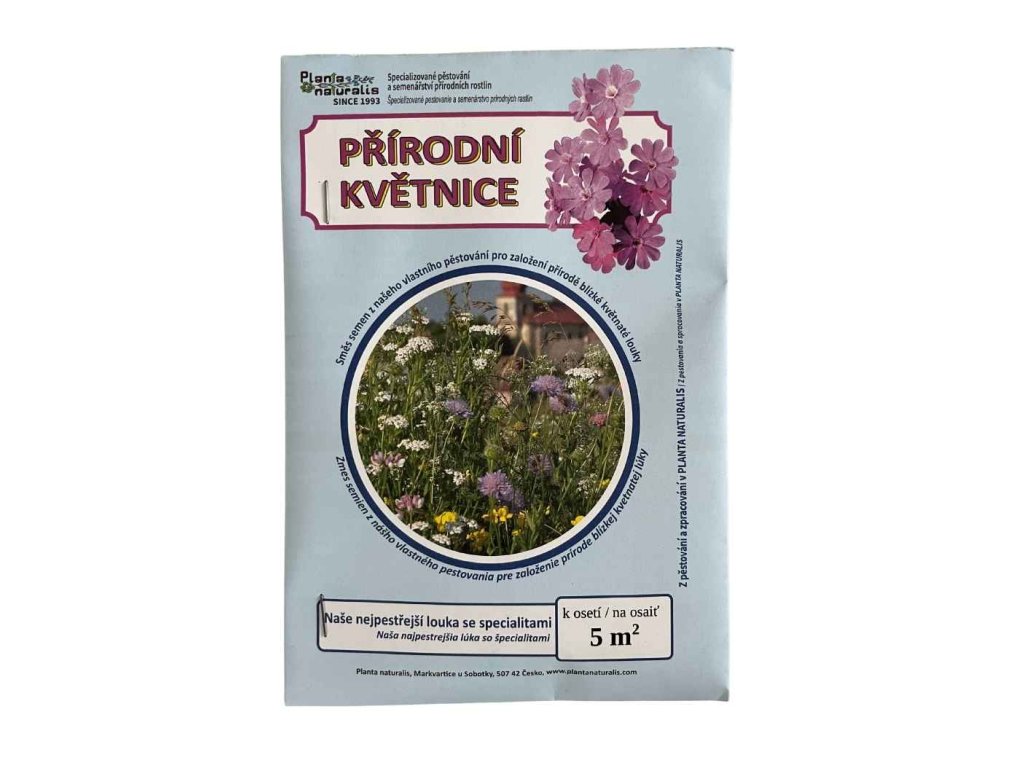 Přírodní květnice patří mezi nejbohatší a nejuniverzálnější směsi pro zahradní louky. Obsahuje 60 druhů lučních květin doplněných o 9 druhů trav, takže vytváří mimořádně pestrý porost, který si poradí s různými podmínkami — od plného slunce až po mírné přistínění. Díky široké škále druhů dobře roste ve středně suchých i vlhčích půdách, což z ní dělá jednu z nejpřizpůsobivějších směsí vůbec.